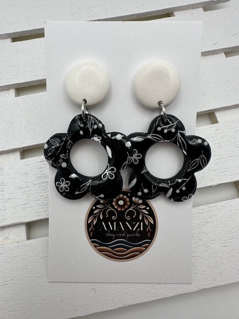 Bloom Pop is a throwback to flower power with a modern edge. These black floral cutout earrings are sprinkled with delicate white doodle-like blossoms and anchored by a soft white stud, creating a striking contrast that’s bold yet totally wearable. Perfect for anyone who loves a little vintage flair with a whole lot of fun.