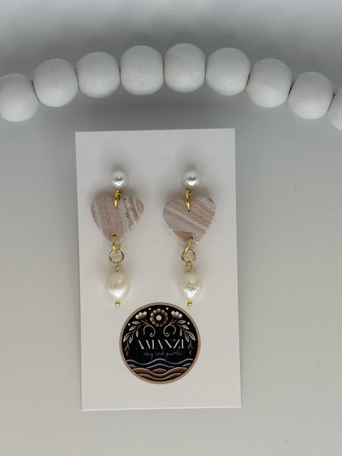Soft textured hearts finished with a delicate pearl drop bring romance into neutral form. Feminine without being flashy, this pair carries quiet elegance and gentle charm.