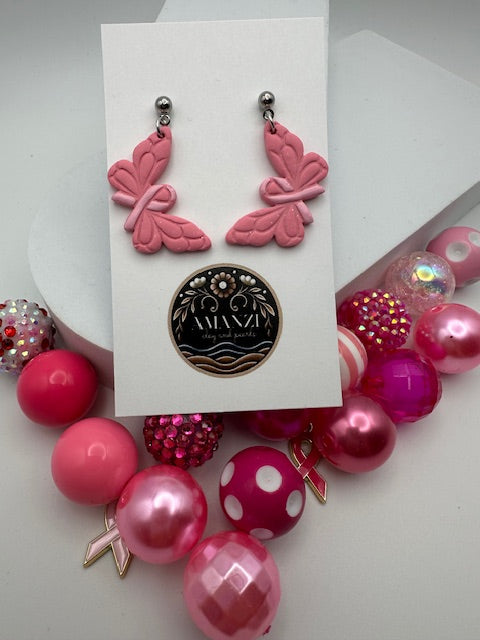 The Ribbon Wings earrings beautifully combine the elegance of butterflies with the powerful symbol of the pink ribbon. Each earring features soft pink butterfly wings intertwined with the iconic awareness ribbon, representing hope, transformation, and unwavering strength.