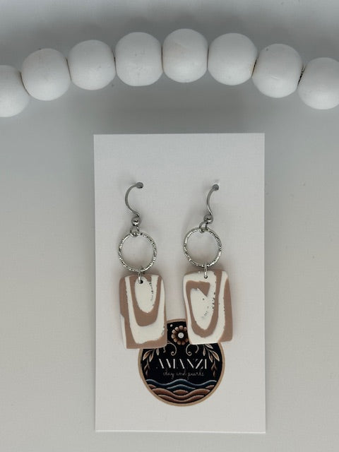 A modern neutral with an artistic twist. The circular accent paired with the abstract drop creates visual balance and movement, while the warm taupe and ivory palette keeps it timeless.